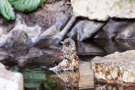 Starling nestling in water