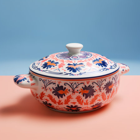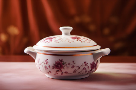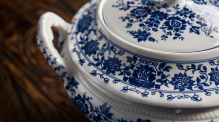 A vintage fine china tureen adorned with traditional blue and white patterns perfect for serving hearty soups and stews at a special dinner gathering