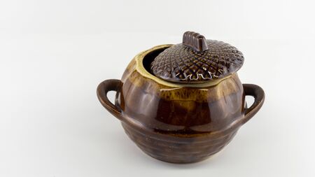 Blue empty ceramic bowl or container with lid, isolated over plain background