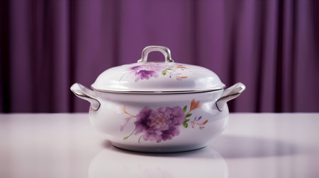 borscht served in an ornate ceramic soup tureen, created with generative ai