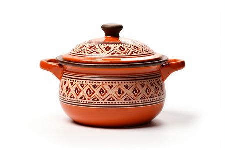 A top-down view of a traditional clay pot showcasing a rich brown glaze and sturdy side handles, perfect for cooking or decoration in any setting.