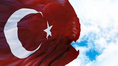 Waving Turkish Flag in the sky. Writing area. Background. Wallpaper.