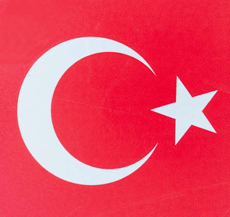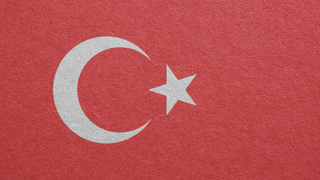 Turkey Flag outline on cardboard surface. Paper texture with cellulose fibers. paperboard wallpaper or background. The official symbol of Turkey. faded pale color