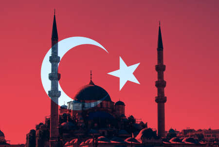 Turkish Flag between two Muslim mosque minarets
