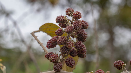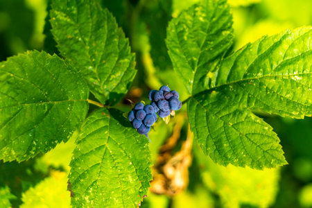 Blackberries ripening on the vine in a sunlit garden during late spring