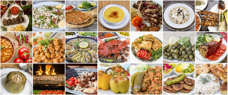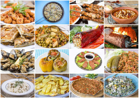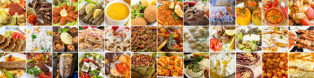 Collage of different traditional Turkish foods and dishes. Food background.