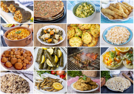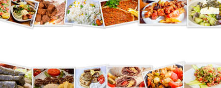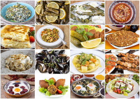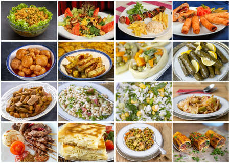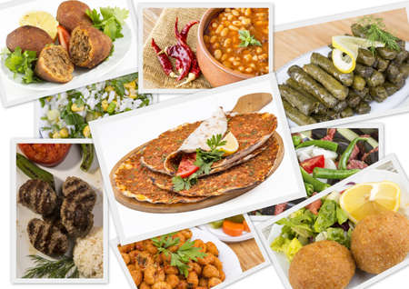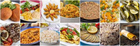 Food set of different traditional Turkish dishes. Collage of Mediterranean cuisine.