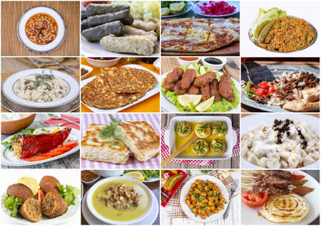 Traditional Delicious Different Turkish foods collage. Rich menu.