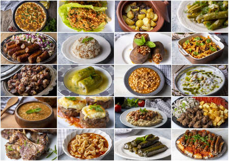 Traditional Turkish cuisine. Collage of different Turkish dishes. Selective focus.