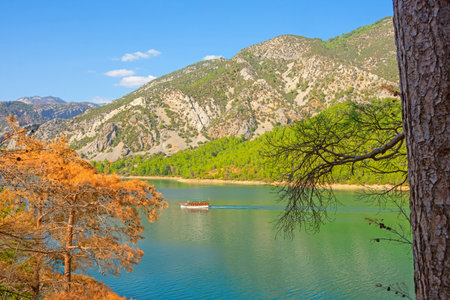 Panorama of Oymapynar reservoir in Turkey, Green Canyon on Manavgat River.