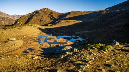 Akchan valley. Lower Akchan lake. Mountain Altai landscape