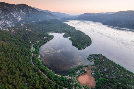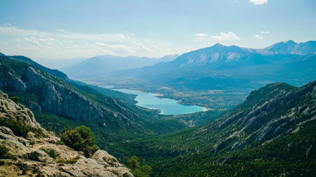a tranquil lake glistens, framed by Turkey's breathtaking mountain landscape