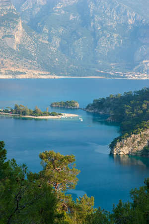Lagoon in sea landscape view of beach and mountains Oludeniz Fethiye, Turkey