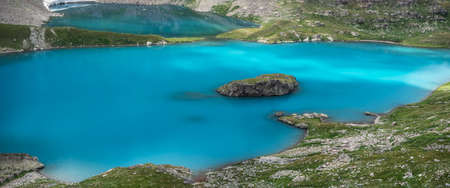 Panorama of the lake in the mountains with turquoise water