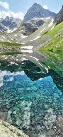 Landscape with a glacial lake in the highlands of Fagaras mountains, Romania