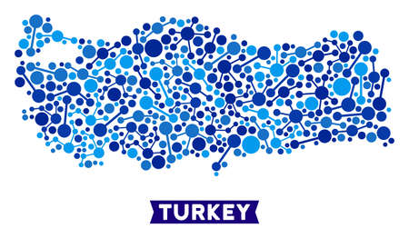 Web Turkey map composition. Abstract territorial scheme of links in blue shades. Vector Turkey map is composed of internet links. Concept of provider ditributor.