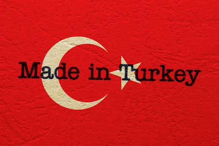 A vector map of Turkey composed of the country name and the colors of the national flag.
