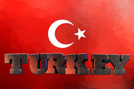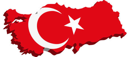 3d map of Turkey resting on national flag backdrop. 3d illustration