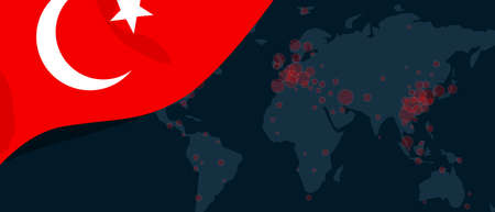 Corona virus covid-19 pandemic outbreak world map spread with flag of Turkey illustration