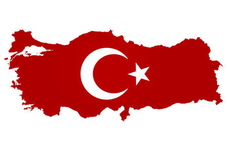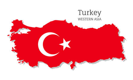 National flag of Turkey. Country outline on white background with copy space. Politics illustration.