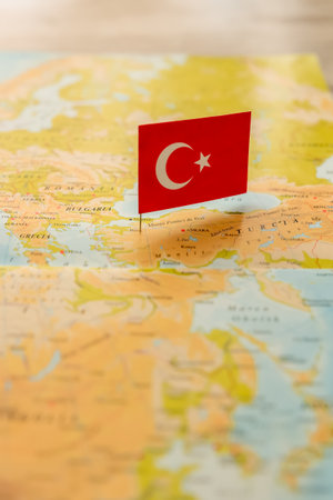 Flag of Turkey on the map. Selective focus. Shallow DOF.