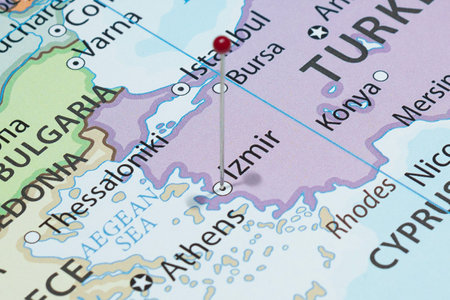 Izmir, Turkey, on a road map