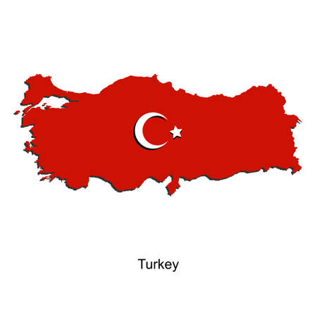 Turkey map and flag. No text. Image contains layers with map contours. Highly detailed vector illustration.