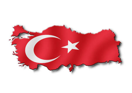 3d rendering of Turkey map and flag on white background.