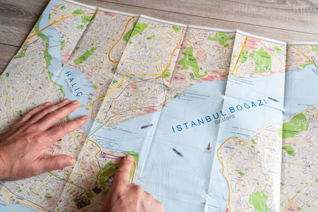 the consultation of the city map of Istambul