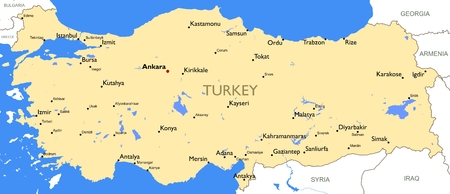 Vector map of Turkey with names of cities and with borders city