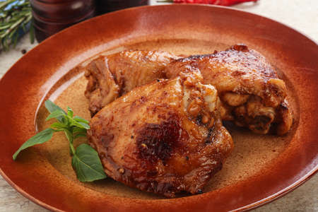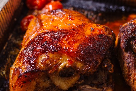 Roasted chicken leg thighs with spicy sauce