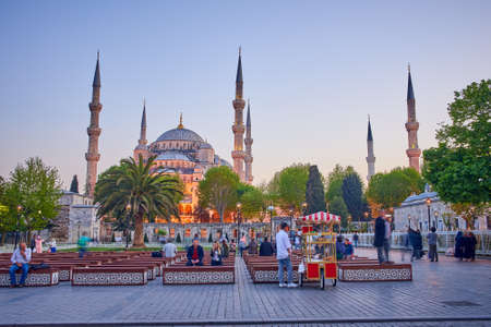 Sultanahmet Park with view of Blue Mosque also called Sultan Ahmed Mosque or Sultan Ahmet Mosque with fountain in the foreground, Istanbul, Turkey.MARCH 11,2017