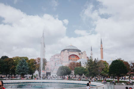 ISTANBUL TURKEY - August 2019: Hagia Sophia Hagia Sofia, Ayasofya Byzantine architecture, city landmark and architectural world wonder.
