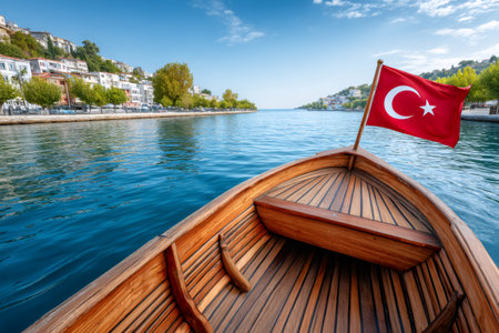 National Turkish flag with boats and ships on water
