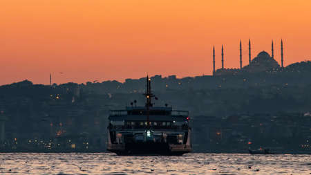 Ferries on sunset in Istanbul