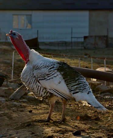 Farm animals. Male farm turkey having a walk on the farm