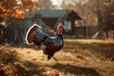 Majestic turkey strolling in cornfield post harvest, a captivating and picturesque scene