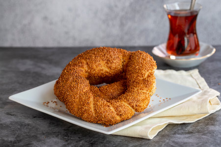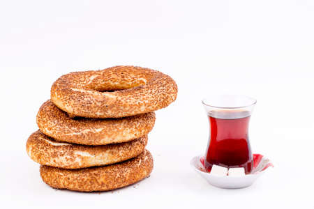 Traditional Turkish bagel; Turkish bagel and Turkish tea