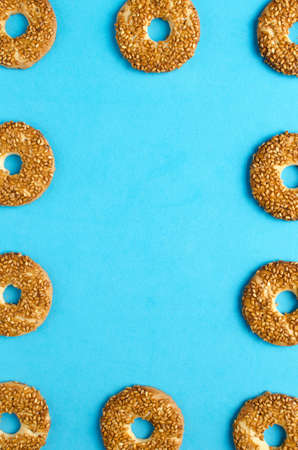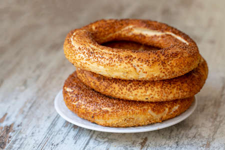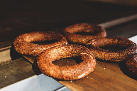 Turkish bagel. Round shaped sesame bagel. Pastry delicacies. Local name bagel or crispy