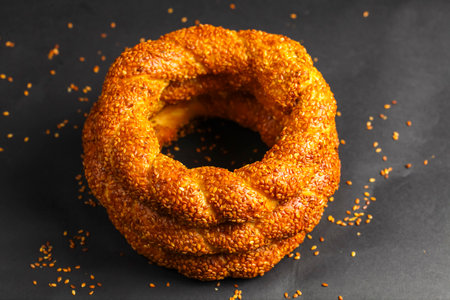 sesame bagel. Turkish pastry product. Sesame bagel on a dark background. close-up. local name sesame bagel