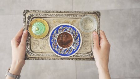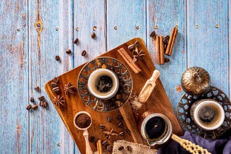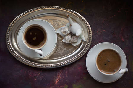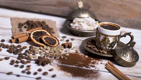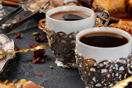 Traditional Turkish coffee. Coffee in the oriental style vintage. Selective focus