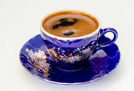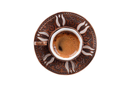 Turkish coffee isolated on white background. Traditional Turkish cuisine flavor. close up