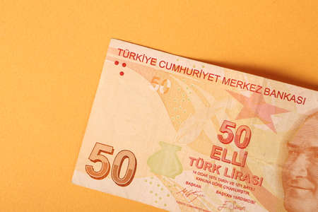 Fifty liras, Turkish banknotes on the isolated white backgrounds