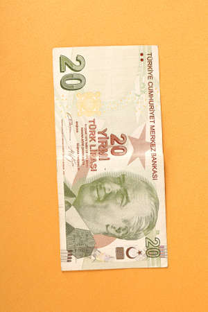 Macro shot of the twenty turkish lira banknote