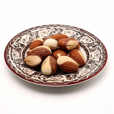 A mixture of nuts on a glass plate