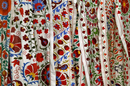 Traditional uzbek suzani embroidery fabrics at oriental bazaar