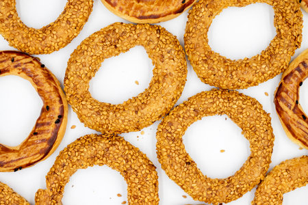 sesame bagel isolated on white background. Traditional Turkish cuisine delicacies. local name lamp ring
