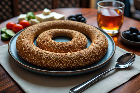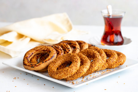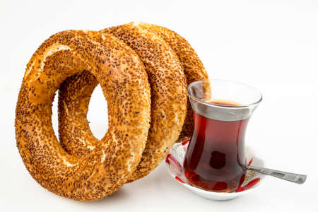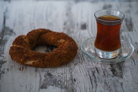 Traditional Turkish bagel; Turkish bagel and Turkish tea