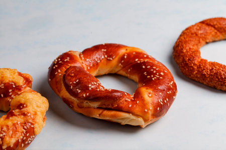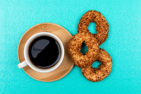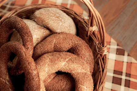 Traditional middle eastern sesame ring cookies called oil lamp. Turkish sesame bagel. close up