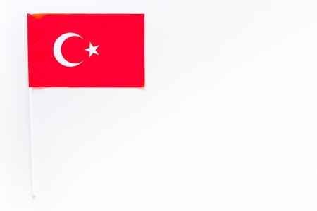 Turkish flag on a white background. Official flag of the Republic of Turkey. Red banner with a star and a month. Official symbols of Turkey. Flags of the world.